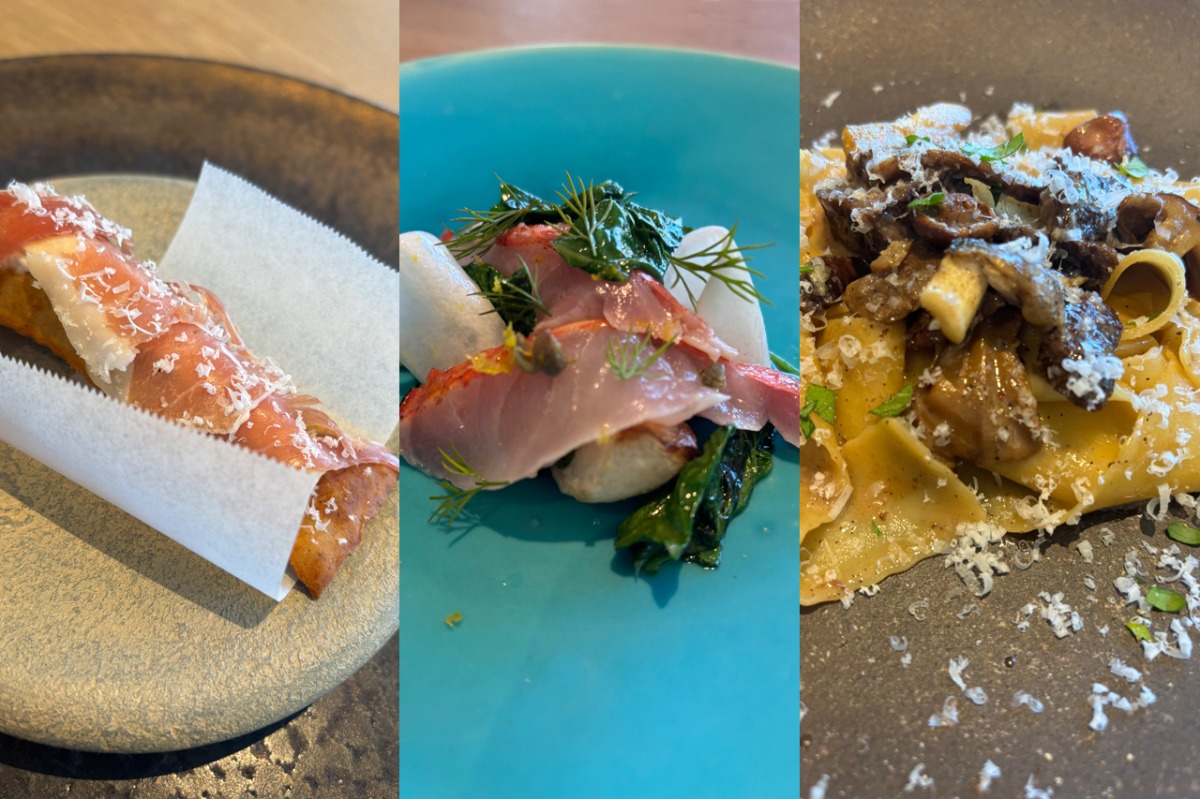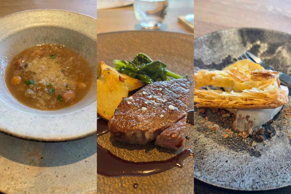 この日は、フレッシュな酒粕をチーズに見立て生ハムと味わう口取、豆など具沢山のスープ、きのこの旨みが詰まった手打ちパスタ、薪火料理の真骨頂と呼べる肉料理などが心地よいテンポで運ばれました。どれも、生産者や季節の声が聞こえるような丁寧な仕込みが感じられ、しみじみおいしい。シェフの人柄が伝わってくるのです。この一期一会の体験のために、遠方から足をはこぶファンが多いのでしょう。私もすっかり虜になりました。
