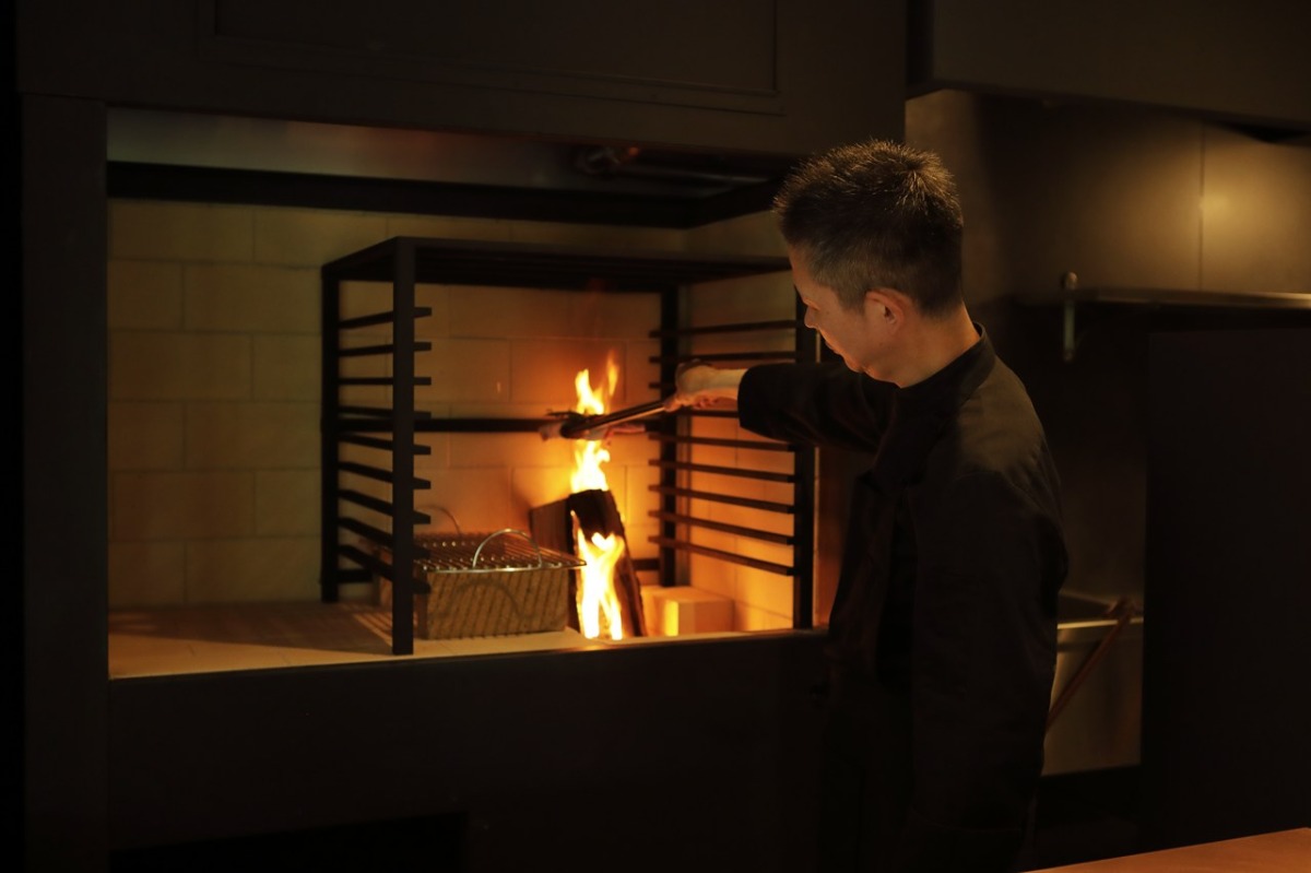 ▲ 薪火を自由に操りながら、食材の旨味を引き出すシェフ。香りもごちそうです