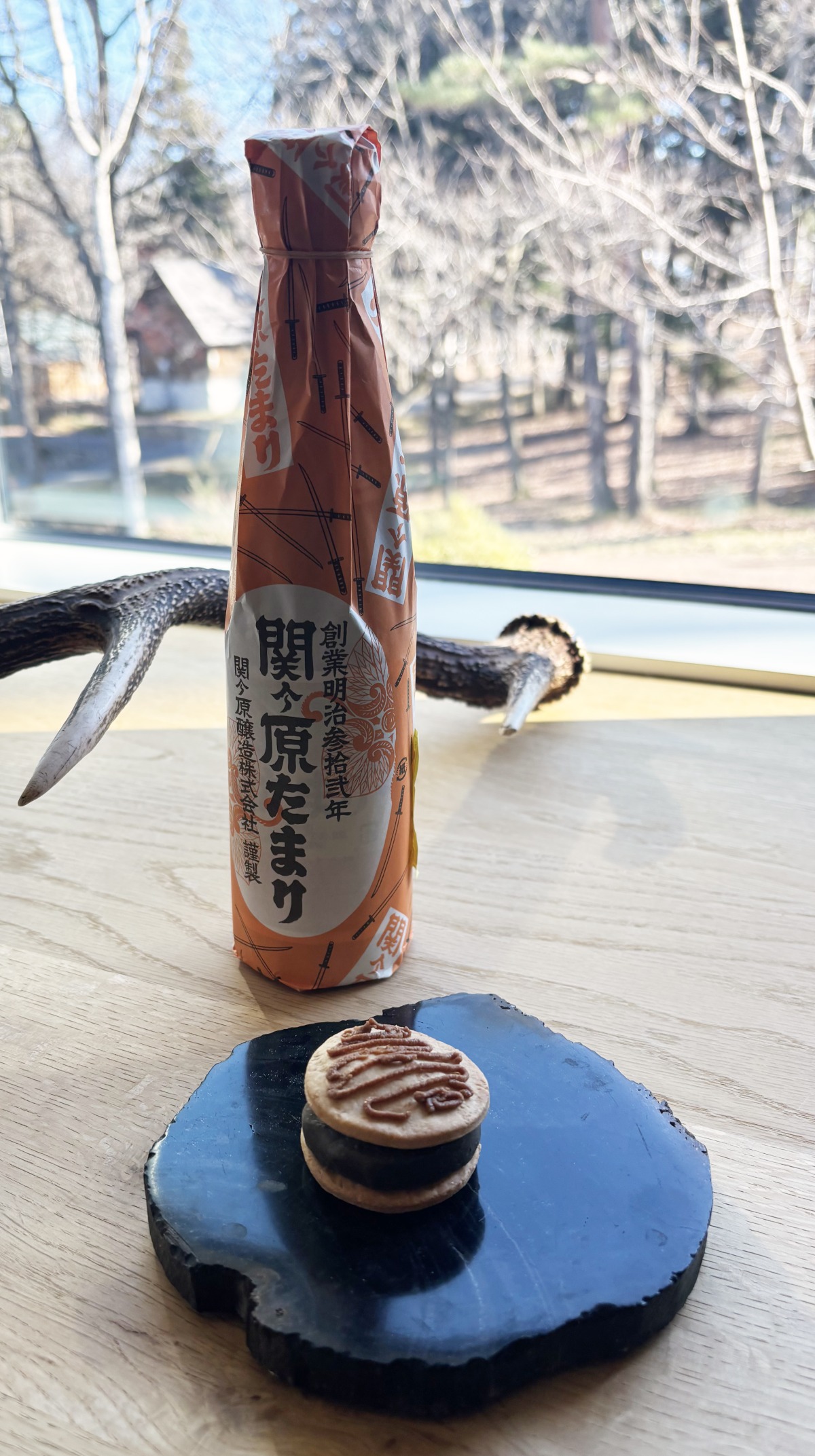 コースの締めくくりは、サプライズでなんと「関ヶ原たまり」を使ったデザートが登場! たまりを効かせたサブレにほうじ茶のガナッシュをサンドしたもので、塩気が絶妙なアクセントになっていました。青木さんのセンスと心づかいに感動し、「関ヶ原たまり」を使った新感覚スイーツを一緒に開発できたらいいなと、新たな構想が浮かびました。ぜひ実現できるよう、進めていきたいと思います。